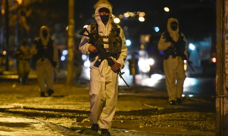 Vào ngày 15 tháng 7, những người lính Colombia mặc đồng phục bảo vệ đã tuần tra cộng đồng Usme ở phía nam của Bogotá. Ảnh: AFP. – Tổ chức Theo dõi Nhân quyền viết trong báo cáo rằng trên khắp Colombia, các băng đảng ngăn người dân rời khỏi nhà của họ, ngay cả khi họ bị bệnh. Ở các tỉnh Cauca và Guaviare, các nhóm vũ trang cũng đốt xe máy, bỏ qua các hạn chế để ngăn chặn Covid-19.