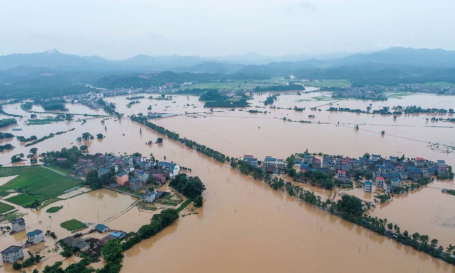 Sáng nay, sau những trận mưa lớn và lũ lụt dọc theo thượng nguồn sông Shunjiang, mực nước hồ Bayang dâng cao. Vào ngày 10 tháng 7, tại Cát An, tỉnh Giang Tây, vùng biển chưa từng có hơn 22,5 m đã đe dọa nhiều thị trấn và làng mạc gần bờ kè hồ.