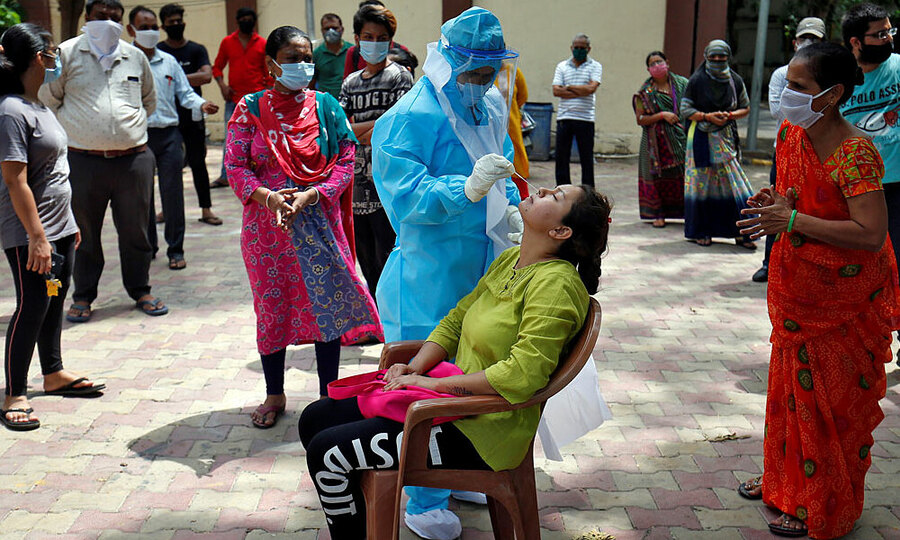 Nhân viên y tế đã thu thập các mẫu nCoV tại một khu dân cư ở thành phố Ahmedabad, Ấn Độ vào ngày 8/7. Ảnh: Reuters – Cho rằng dự kiến số ca nhiễm nCoV ở nước này sẽ lên tới 1 triệu – 2 ngày và 25.000 người sẽ chết trong năm tới, chính quyền địa phương trên khắp Ấn Độ gần đây đã gỡ bỏ những hạn chế mới .